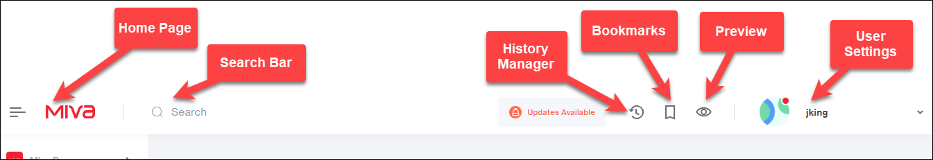 Miva Logo: Clicking on the Miva logo always takes you to the home page.